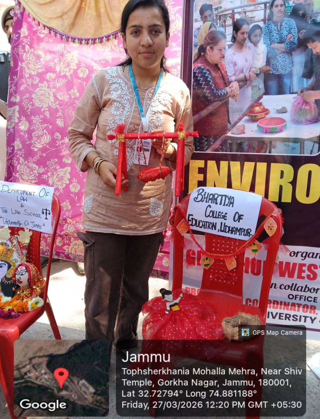 The event started with the welcome speech of the Principal mam Dr. Anita Bali. The chief Guest,Dr. Sanjay Verma principal Govt. Degree College Boys, Udhampur was warmly welcomed and escorted to the rooms where students displayed India's rich traditions and customs of Kashmiris ,dogras, Himachal Pradesh, Punjabi and South Indians . During the prize ceremony,the Punjabi occupied the third position,South Indian group earned the second prize and ist position acquired by Dogra group.